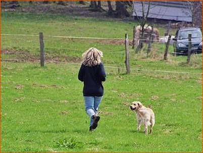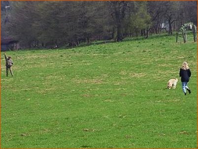 Ui, Frauchen rennt - hat sie etwa Angst vor dem Schuß?