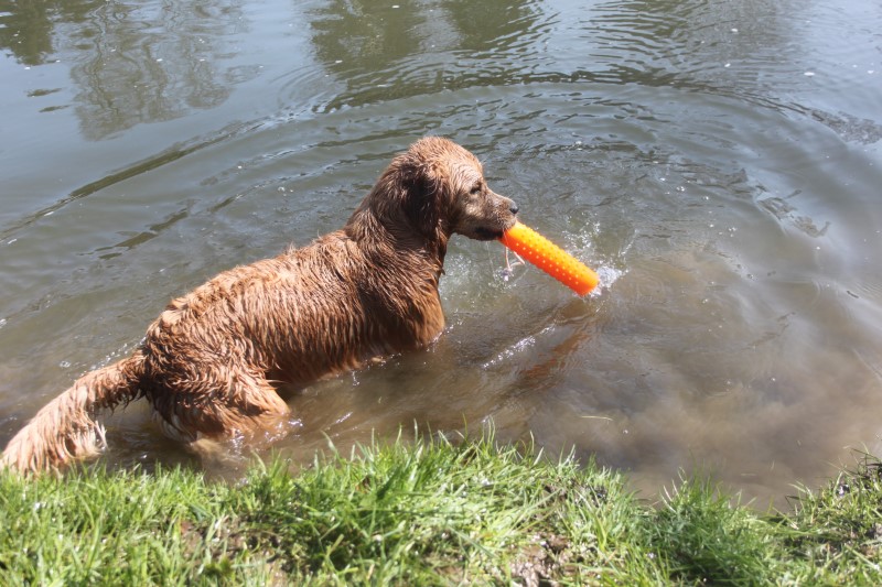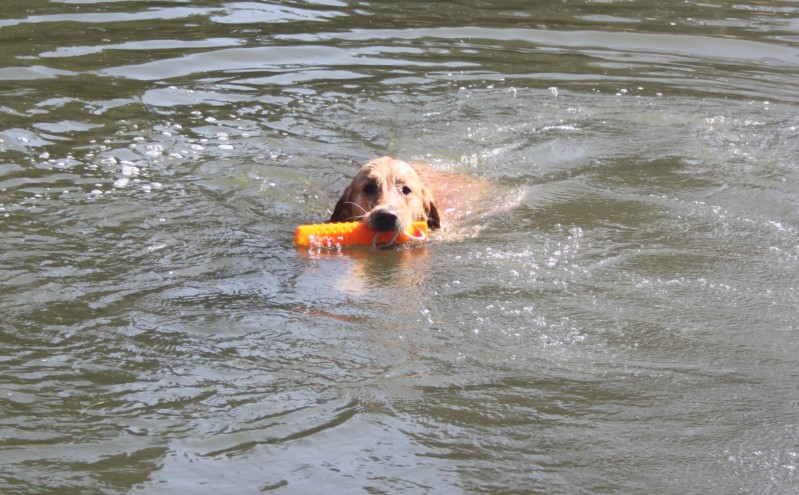 Dann hat sie vom Rand her das Dummy irgendwie erwischt - gewartet bis es ihr entgegenkommt