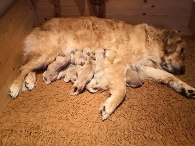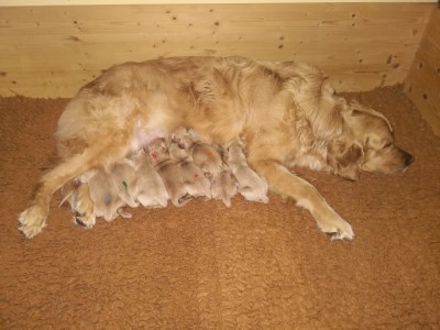 Die glückliche Mama mit 8 Welpen
